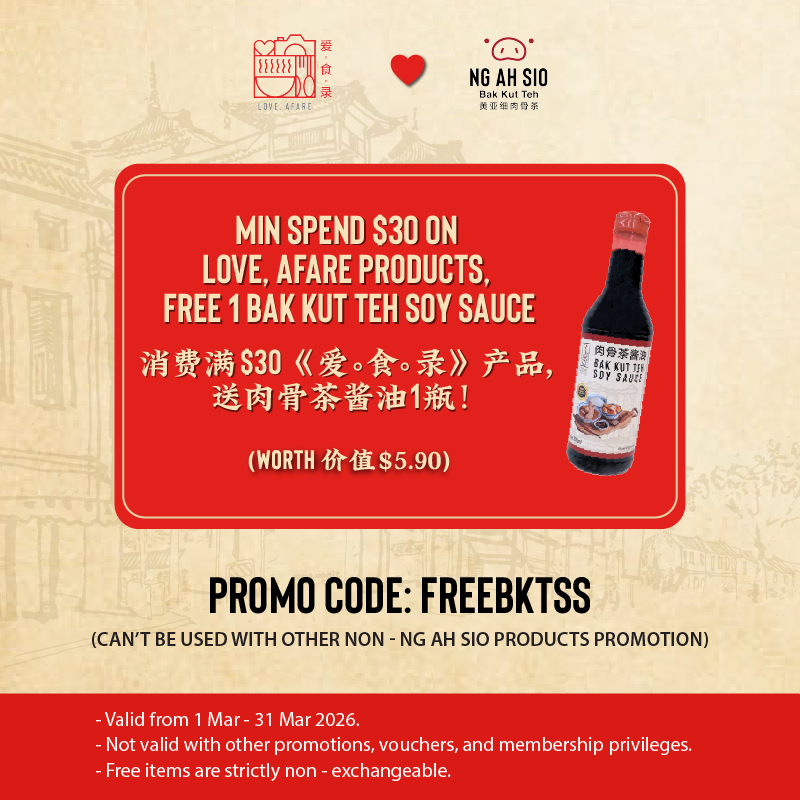 Love, Afare Ng Ah Sio Bak Kut Teh Soy Sauce is the ideal dipping sauce for our signature Bak Kut Teh, best served with fresh cut chilli or minced garlic.