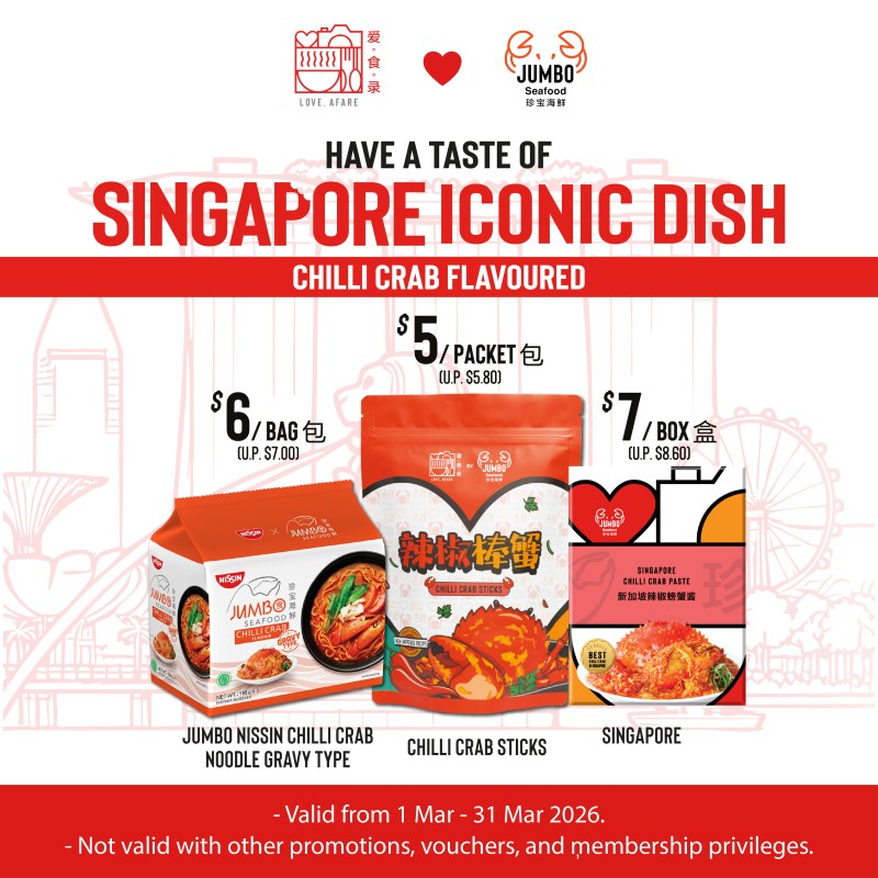 Savour the flavours of Singapore with the NISSIN x JUMBO collaboration, combining the iconic Chilli Crab with NISSIN's instant noodles for a gourmet experience at home.